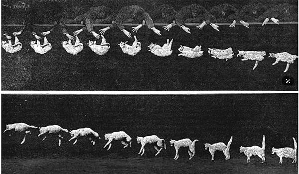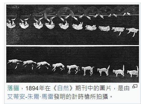 落貓,1894年在《自然》期刊中的圖片,是由艾蒂安-朱爾·馬雷發明的計時槍所拍攝。