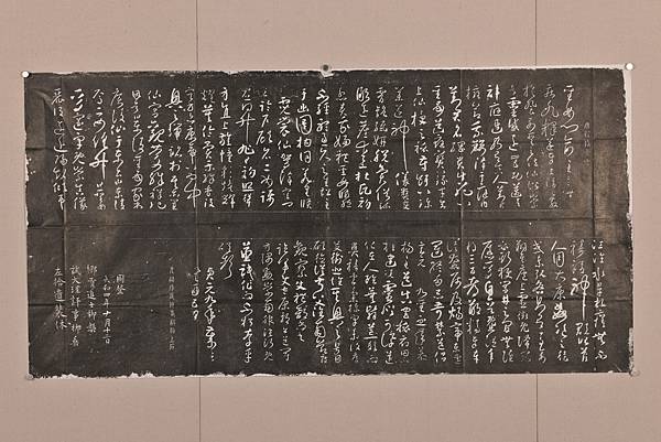 〈聖母帖〉為懷素於唐貞元九年五月(793)所書,是記述晉代杜、康二仙女躡靈升天,以及唐代淮南節度觀察使禮部尚書 ——杜佑(735-812)重修聖母觀的經過。後有唐人裴休(791—864)、柳槃(約活動於九世紀)及柳乗(約活動於九世紀)於大和四年十月十二日(803)共同觀覽懷素此帖的題記。此帖以小草書寫成,字字獨立,少連綿的筆畫,用筆渾厚。〈聖母帖〉與〈藏真律公帖〉同於北宋中期上石(〈聖母帖〉刻於1088),都是北宋人對於懷素草書風格認識的一部分。北京故宮博物院藏有〈聖母帖〉北宋拓本,明代晉府世子朱奇源(1450-1501)所刻《寶賢堂集古法帖》(成帖於1496)中另有翻刻本。此次展出為陝刻原拓,原為二十世紀初期畫家況維琦(1904—?)贈與味逸先生所藏,後流傳至康益源先生謙受堂。