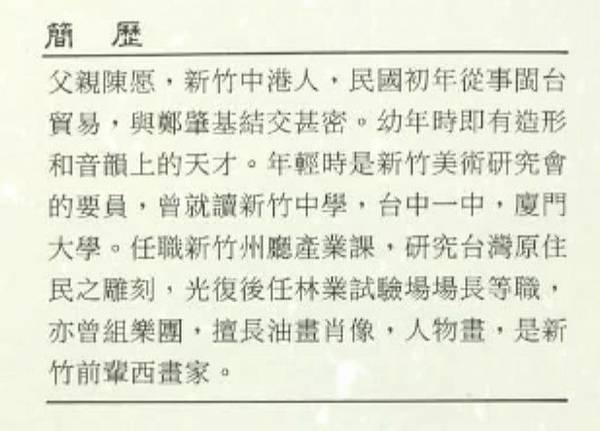 陳如鯉的父親陳鏡波是新竹聞名的才子,舉凡西樂藝術、雕刻、文學、繪畫等樣樣精通。因此陳如鯉先生由於遺傳了父親的藝術細胞,且生長於藝術氣息濃厚的環境之下,在偶然的因緣際會下,踏入了工藝品生產及經營的領域,遂於西元1969年創立了如勝企業有限公司。精湛的仿古工藝技術,為大眾所認同。因此日本人及台灣同行都一致的稱他為”台灣人間國寶”。