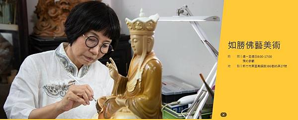新竹曾是佛像大量外銷的重要基地,甚至領先半導體三十年!西元 1960 至 1990 年代是新竹創下佛像外銷奇蹟的黃金時期,當時作為上游貿易商的如勝企業,由知名佛像工藝師陳如鯉先生創立,為少數經營至今依然著重於佛像外銷業務的企業,現今由陳慧芬女士與陳銘真女士繼承父親陳如鯉先生對工藝美術的執著,不僅持續研發佛像工藝技術,同時發展佛教彩繪。