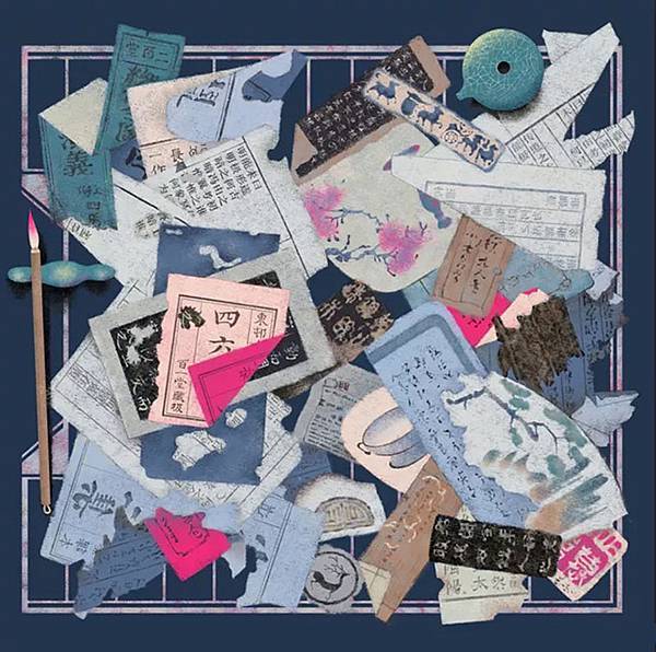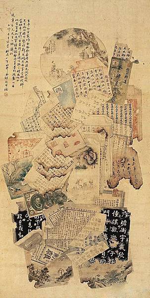 「錦灰堆」一詞最早約略推至於元代,相傳為與趙孟頫(1254~1322)齊名之花鳥奇才錢選(1239~1301)在一次酒足飯飽之際,一時興起,就散落於桌間的魚骨剩渣、酒菜殘物,隨手就興繪製成一幅寫意雅緻的書畫橫軸,並為其題字命名,這是目前關於錦灰堆最早的記載。「集破」與「集珍」是錦灰堆的別名,「破」與「珍」於事物的本質原無所差異,價值的判斷在於主觀認知;因此「錦灰堆」一詞隱含的是中國文人從群體意識到個體自覺的過程,從自身省悟以找到新的視角,有所感觸,更進而能向外旁徵博引。