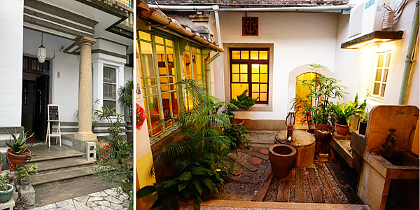 天井裡有棵大約三層樓高的桂花樹,據說與建築同齡,至今依然挺綠飄香,店家特地在樹下擺置一套桌椅,讓來客享用悠閒的懷舊時光。