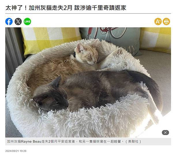 太神了!加州灰貓走失2月 跋涉逾千里奇蹟返家 - 國際 - 自由時報電子報 https://bit.ly/3Bek2Cb