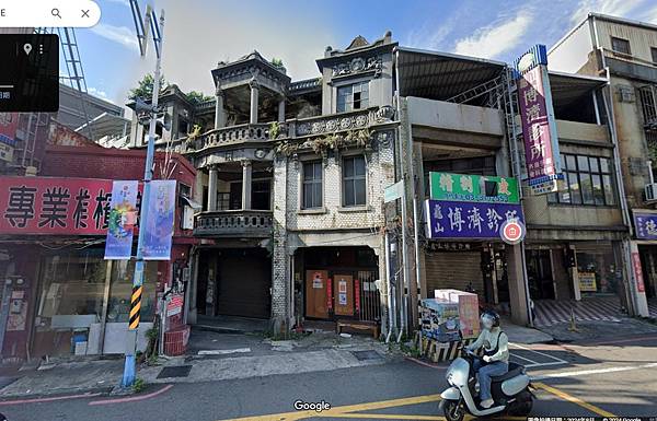 幸好Google街景中的這間洋樓運氣不錯。這棟被稱做「曹家洋樓」的建築於1927年落成,座落在桃園市龜山區的主要交通幹道——萬壽路和舊時龜崙古道的龜山后街交叉口。