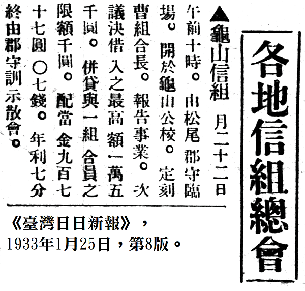 1925年6月當選龜山信用組合監事,1927年6月組合長呂新進辭職,由龜山庄長康新慶暫代,1928年1月爆發龜山信組解散事件,因呂新進、呂光輝兩位理事的辭職案,且某位理事擔保的200圓不賠償,導致滿場大混亂,最終決議解散;同年6月曹丁波繼任當選龜山信用組合長,1929年4月便將龜山信組事務所遷至「曹丁波洋樓」。1933年1月22日於龜山公學校召開龜山信組總會,由曹丁波主持會議,會中決議借入最高金額為1萬5千圓,併貸與一組合員之限額為1千圓,配當金(分紅金)977圓7錢,年利7分。1936年2月,曹丁波與理事呂中、卓國銓等人一同前往鶯歌,拜訪當地的產業組合,來視察產業倉庫與調製工場,之後又趕去三峽、中和、板橋等地視察各地的產業組合,學習經營產業倉庫的經驗。