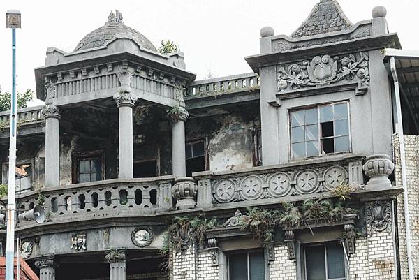 曾經稱霸龜山天際線的曹家洋樓,叱吒風雲數年間,在各年份當中擔起不同的身份,時空在此堆疊層次豐富的人文史記,故事篇篇引人入勝,建築美學更是精彩絕倫,由萬壽路望向雖然被水泥鐵皮等外物遮蔽一隅,但盛世絕美的巴羅克式建築外觀絕對無法忽視,拔尖六角亭豎立于三樓中央外側,形成醒目又優雅的半戶外空間,立面洗石子浮雕精緻的雕花、勳章飾、柱體等細節,立體鮮明、饒富趣味,同時也以各式炫麗的花磚及典雅磁磚妝點,而建築後方結構更是妙趣,混搭著閩南磚屋、英式回廊又帶點日式風格,窺見曹家人各自擁護的建築格調所好,預留一個下午到此體驗向時光致敬的散策,必定收穫良多。