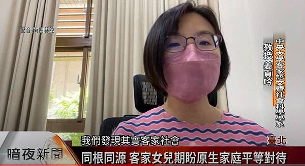 《台灣客家女性》作者 張典婉:「20年來,我們客家女性的地位其實,我覺得比較敢大聲說出來,大聲說 現在又有婚姻的自由,讀書的自由 財產的自由,另外還有一個就是說,其實現在同婚,其實很多的女性也都很勇敢。」