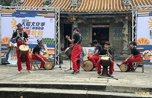新竹縣「大隘文化季」暨大隘3鄉(北埔鄉、峨眉鄉、寶山鄉)運動會GO敢動記者會,由BOLOYE表演開場。(記者廖雪茹攝)