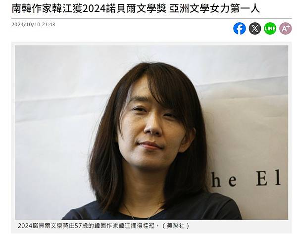 2024年諾貝爾文學獎 韓國女作家韓江獲殊榮 | 文化 | 中央社 CNA https://bit.ly/4dK5ecf