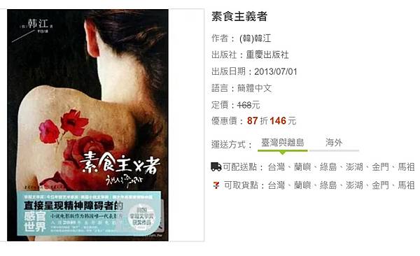 《素食主義者》的英文翻譯版於2015年1月在英國出版,一炮打紅,登上倫敦《標準晚報》暢銷小說第二位。