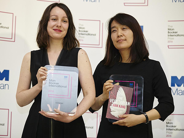 韓國作家韓江與英國翻譯狄波拉‧史密斯同臺領獎。這是韓國作家首次入圍國際布克獎。