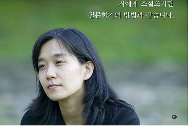在2016年的一場文學聚會上,韓江表示,她持續寫作,是為了尋找一個問題的答案。問題是:人類是什麼?