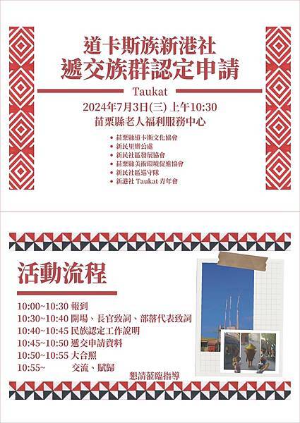 縣府原住民族及族群發展處長盧曉玲指出苗栗縣目前有兩支平埔族群-「巴宰族」及「道卡斯族」,縣府非常重視本縣平埔族文化傳承及推廣,每年挹注經費辦理平埔族相關文化傳承及祭典,而原住民族委員會亦補助縣府輔導推動平埔聚落活力計畫,透過復振傳承及推廣平埔族群文化及培力平埔族群聚落營造人才,將道卡斯族傳統的牽田祭典,製成繪本並透過繪畫呈現,保存道卡斯語言、文化並向下紮根,讓更多人認識道卡斯,只要走入新港社,就會發現苗栗縣美麗的道卡斯文化。