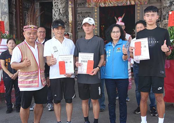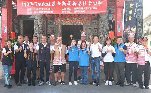 今日登場的道卡斯族新港社牽田祭開幕儀式,副縣長邱俐俐、議長李文斌、縣府原住民族及族群發展處長盧曉玲、後龍鎮長謝清輝、立委陳超明助理蔡其昌、縣議員林寶珠助理劉鳳美等人皆受邀前往致意。