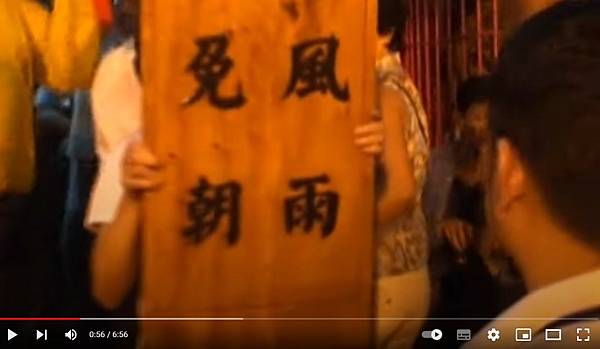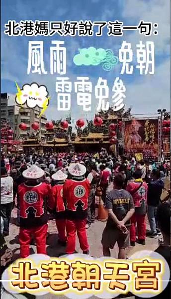 2007年,北港迎媽祖活動遇大雨,我在義民路和民主路附近拍攝活動盛況,看到鞭炮一倒到地上立刻溼掉無法點燃,心中想到朝天宮會不會請出傳說中的「風雨免朝」牌?立即往廟裡跑,剛好留下這段請「風雨免朝」牌的紀錄。