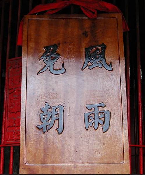 而古時,每當【天妃】華誕來臨,海岸邊便會竪起【風雨免朝】,就是要阻止【四海龍王】來朝敬時,所帶來的【風雨】,如今,每每都能看到【風雨免朝】用在其他【神明】或“事物”,這是很不對的,也是對【媽祖】的一種不尊敬,以下是其中一個傳説: