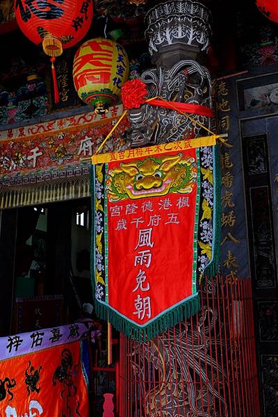 彰化縣同安寮12庄請媽祖,以往媽祖鑾轎都有「風雨免朝」牌,今年因為旱象嚴峻,特別取下,以求天降甘霖。(陳彥鈞提供)