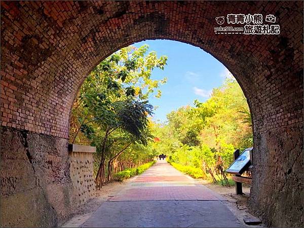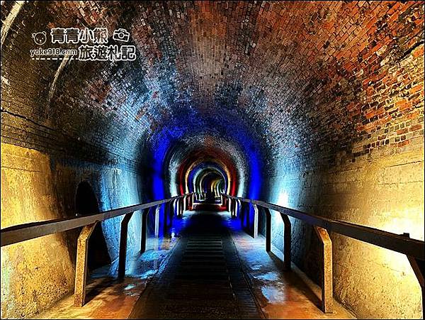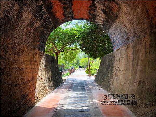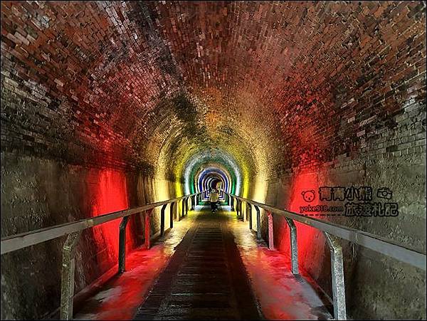 而短短路程中就連有3座隧道,一號隧道長279公尺、二號隧道長162公尺、三號隧道長56公尺,目前隧道內有著彩虹燈光步道照亮昏暗燻黑隧道紅磚不只助於人們行走更有著訪古之幽情,走出隧道外更有著不受開發綠蔭蒼蒼的自然生態古樸夢幻之美。