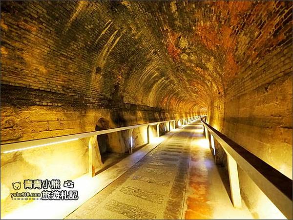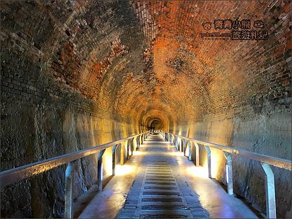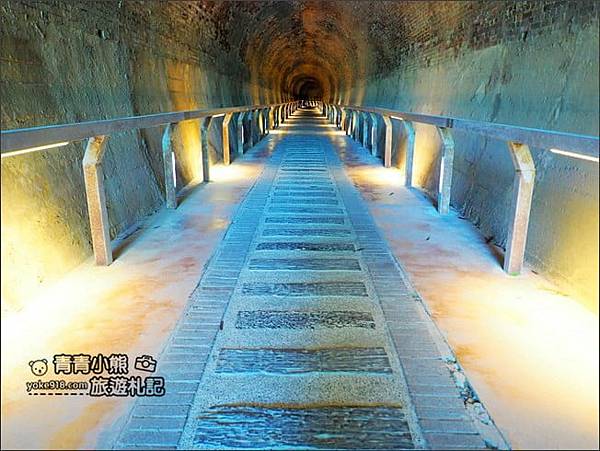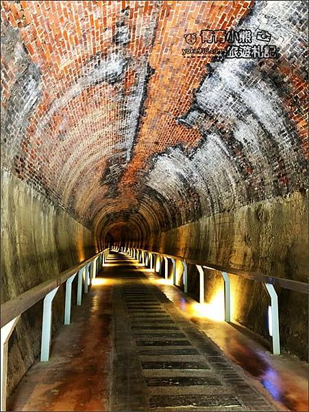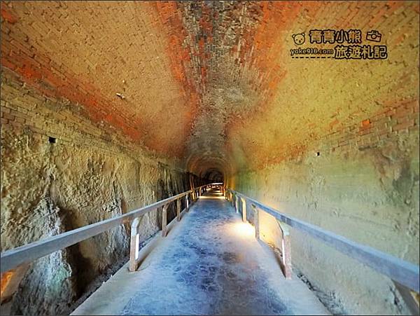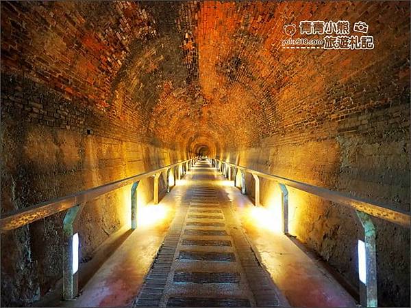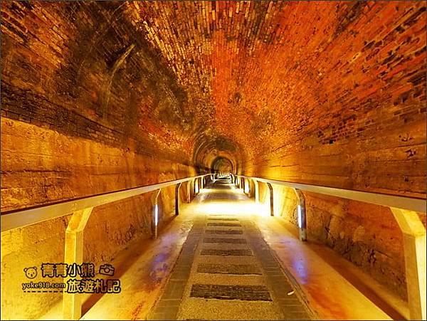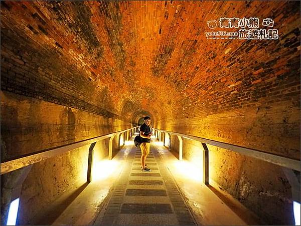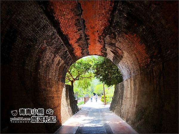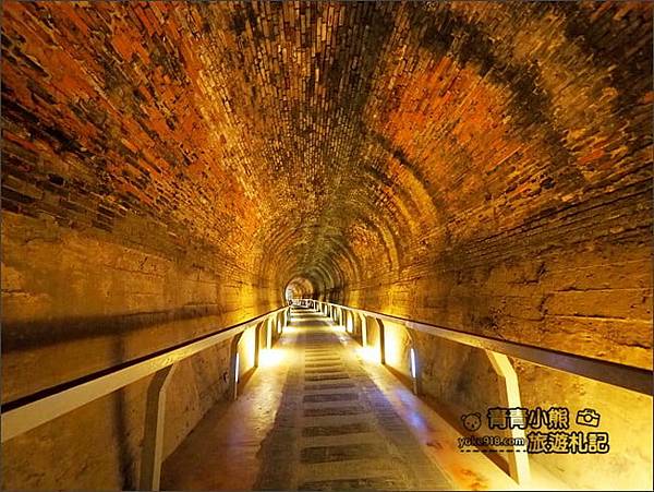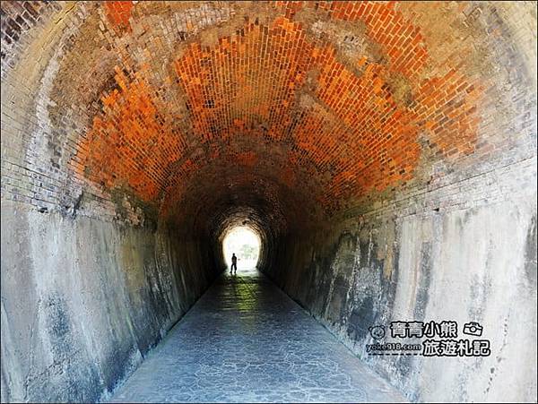 火車隧道內壁全以紅磚砌成,磚塊層層疊砌,形成一優美之馬蹄鐵弧形。據說開鑿之時完全未用樑柱支撑,全運用圓拱力學原理興建。隧道弧形頂部紅磚之黑色痕跡是為火車燃煤燻黑所致,彷彿形成一道見證歷史痕跡及千萬旅人所留下之歲月記憶。