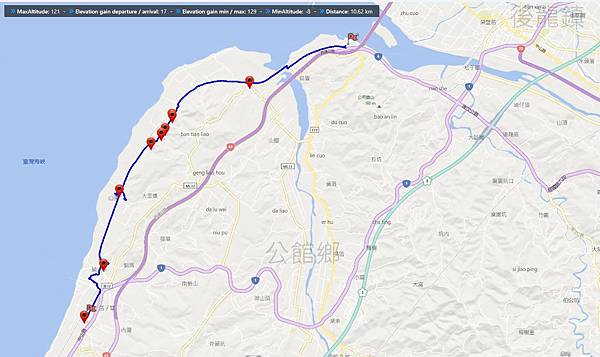 步行距離約10~11公里, 旅行時間約4小時(含休息時間)過港2號隧道出口、山邊媽祖廟、山邊清天宮、白沙屯拱天宮、白沙屯車站等地點設有公廁。