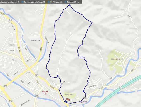 走出文林閣,便是文山路的街道,向右轉,一旁是芎林國小。