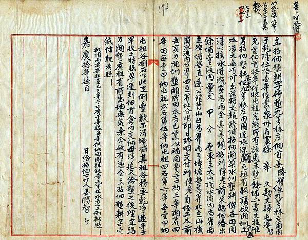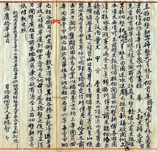 清嘉慶10年(1805)紙寮窩埔地給墾單。