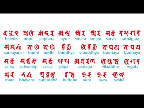 時眾會中除蓋障菩薩從坐而起,合掌[5]白佛言:「世尊!何者是彼陀羅尼法,而能生長福德善根?」佛言:「有大陀羅尼,名最勝無垢清淨光明大壇場法,諸佛以此安慰眾生。若有聞此陀羅尼者,滅五逆罪閉地獄門,除滅慳貪嫉妬罪垢,命短促者皆得延壽,諸吉祥事無不成辦。」時除蓋障菩薩復白佛言:「世尊!願佛說此陀羅尼法,令一切眾生得長壽故、淨除一切諸罪障故、為一切眾生作大明故。」爾時世尊聞是請已,即於頂上放大光明,[6]遍照三千大千世界,遍覺一切諸如來已,還歸本處從佛頂入。時佛即以美妙悅意迦陵頻伽和雅之音而說呪曰: