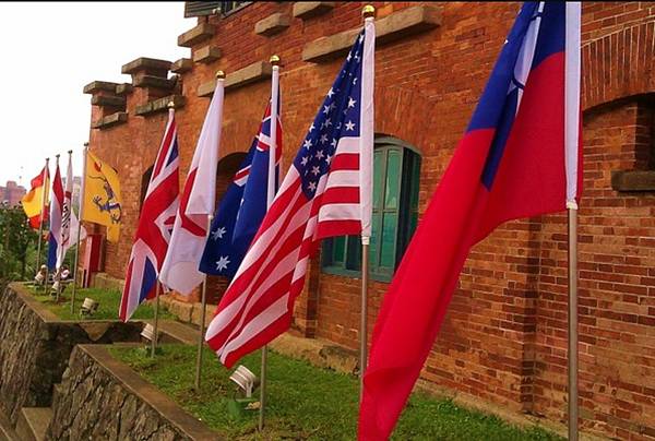 ▲9面不同國旗同時飄揚在淡水紅毛城。(圖/取材淡水導覽旅遊暨文化活動手記部落格)