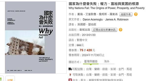 嚴格來說,這本書的理論只是其中一種理解國家發展的視角,在找資料時也發現博客來的留言區有一些不同看法的深入討論,有興趣的讀者可以參考看看。