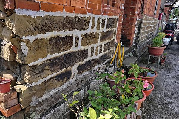 整座古厝使用磚石工料+當地砂岩鑿成,可以從山門跟主屋的外觀可以看出。