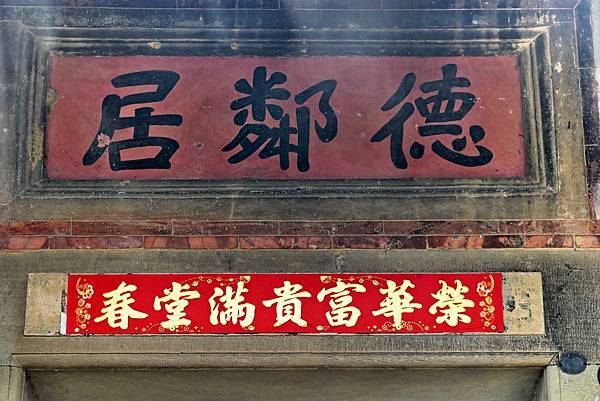 早上去掃墓,中午去吃辦桌,又回家睡了午覺,醒來時已經快3點,想到幾年前有個烏龍茶的廣告,拍攝背景是一間古厝前的廣場,然後有戶人家在辦桌,廣告台詞是引台語俗諺:「醫生驚治咳,總舖驚吃晝,做土水仔驚掠漏。」道盡各行各業一些難處理的工作,後來也有人引伸,如討海驚風透,賓館驚抓猴等,其中背景的這間古厝就是德鄰居,於是便趨車前往。古厝前原有座風水池但已損壞,屋簷的曲脊為「金形馬背」,宅第屋背為土角牆加上六層的方瓦竹釘履避免被侵蝕,形成特殊的「穿瓦衫」,並有一口還可繼續使用的百年古井,現址仍有人居住管理(3:30)。