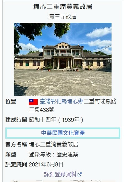 公告資料埔心二重湳黃義故居|文化資產複合查詢|文化部文化資產局--國家文化資產網 https://bit.ly/40BcHYa