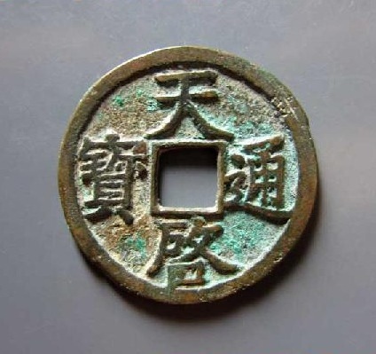 明熹宗天啟元年(1621年)八月補鑄完“泰昌通寶”之後開鑄天啟通寶。“天啟通寶”初鑄為小平錢,天啟二年七月開鑄當十大錢。天啟五年十月,因官私所鑄大錢過多過劣,下令停鑄
