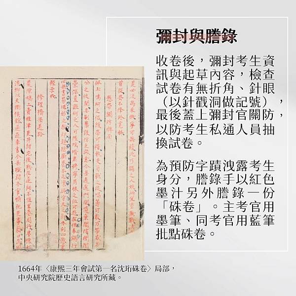 明制,據〔明史‧選舉志〕,考試用墨,謂之墨卷;謄錄用硃,謂之硃卷。清沿之。謄錄 - 教育百科 | 教育雲線上字典 https://bit.ly/40OUWoj