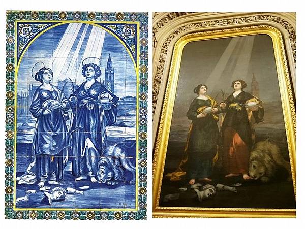 左為《聖胡斯塔與聖魯菲娜》瓷版畫,19世紀製作。右為其複製的哥雅原作《聖胡斯塔與聖魯菲娜》,位於賽維亞大教堂。(王明彥提供)