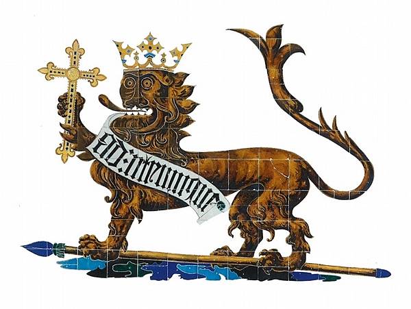賽維亞皇家城堡獅子門的《獅子徽章》,1894年製作。(王明彥提供)