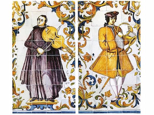 馬拉加教區主教宮殿花園門廊的《侍從演奏樂器》,18世紀製作。(王明彥提供)