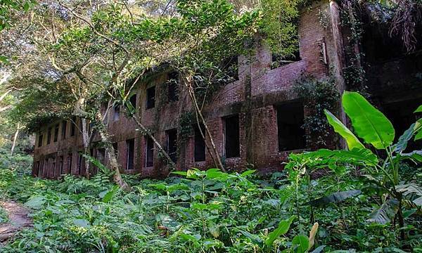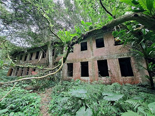 很難想像,台灣的淺山中竟有如此濃密宛如深山的森林,更奇幻的是眼前這一大棟建築,竟出現在如此原始的林中。儘管建築物上方已被樹草林木附蓋,但毫無疑問這裡有人類曾經的文明。(延伸閱讀:金瓜石老礦工鄭春山 用最老派的方式把路找回來,珍貴影像延續礦鄉故事)
