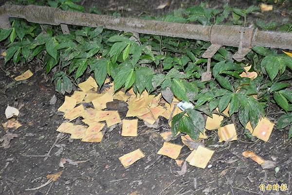 ▲順和媒礦遺址遭灑冥紙。(圖/朱文榮提供)