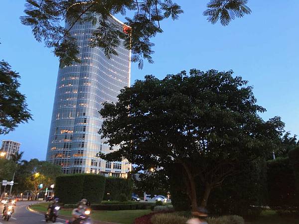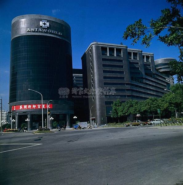 當時從這個角度仍可清楚見到右上角的仁愛國中校舍,畫面最右側的老爺大廈則正在興建中;老爺大廈位於仁愛敦南圓環的東南側(地址為仁愛路四段110號),由華美建設董事長張克東起造,姚元中設計,矜功營造廠承造,1971年11月27日開工,1973年7月10日完工,工程造價約1,157萬元,為一棟地下2層、地上15層的鋼筋混凝土造建築,共1座70戶。