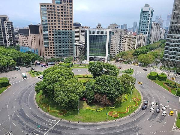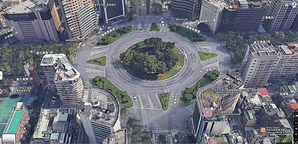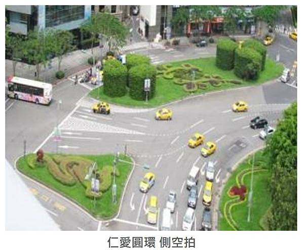 台北市仁愛路圓環俯瞰一景。仁愛路圓環為台北現代都會形象的指標,將敦化南路和仁愛路相扣在一起,敦化南路充滿著商業氣息,仁愛路則相映著林蔭大道。仁愛路圓環,素有都市過濾器之稱。圓環中央的銅像為我國第一任監察院長于右任。台北市仁愛路圓環|國家文化記憶庫 2.0 https://bit.ly/3ZcGNyS
