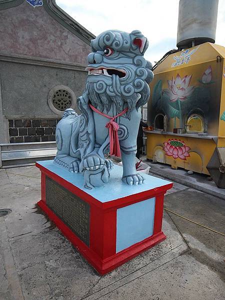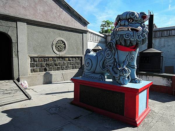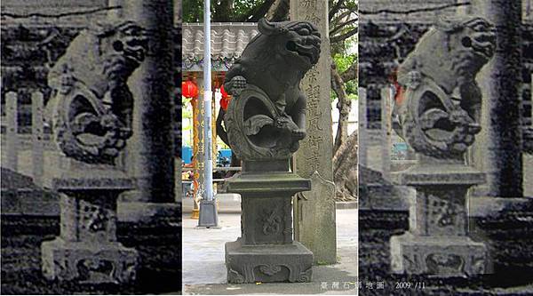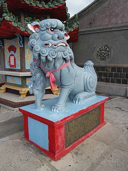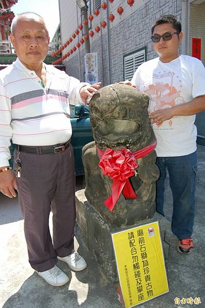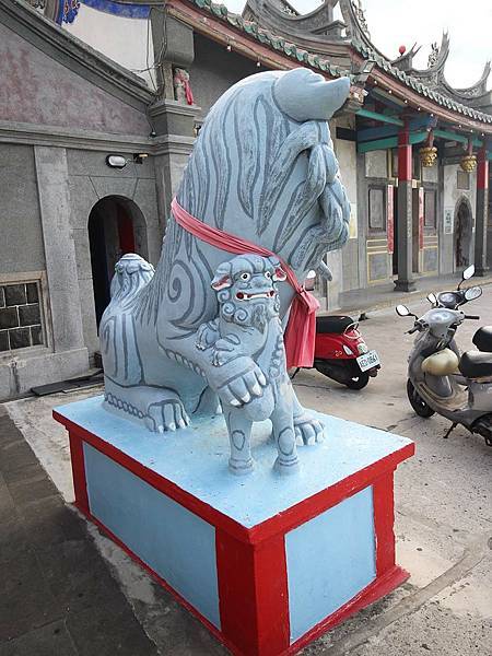 廟埕獅守護茅港尾天后宮,年代久遠,外觀磨損嚴重。(記者楊金城攝)