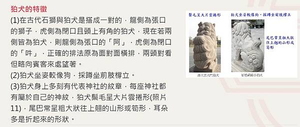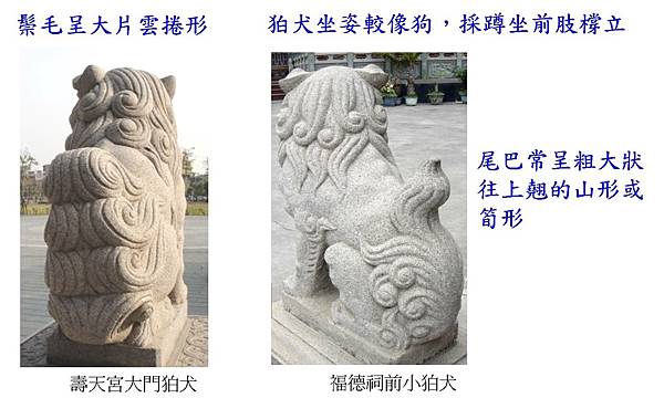 (2)狛犬坐姿較像狗,採蹲坐前肢橕立。
