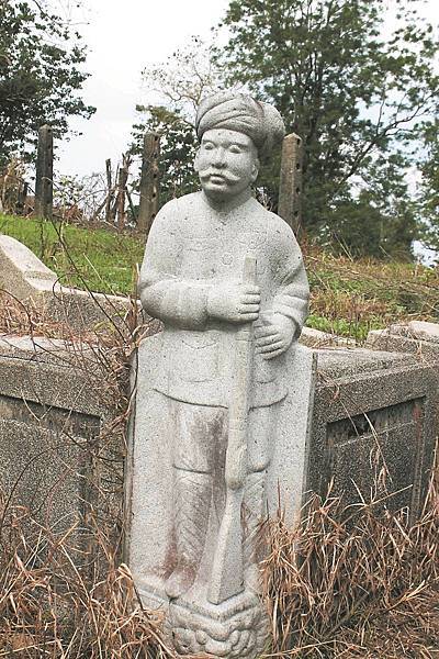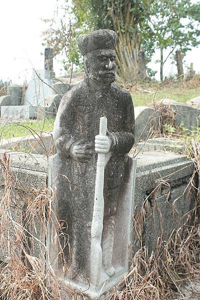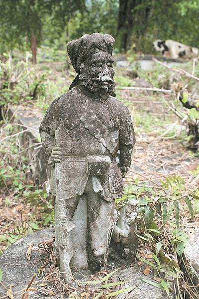 這是一尊約2呎的旁遮普人司閽石雕,持槍立於墳墓前側邊,守護著一座百年老墓。