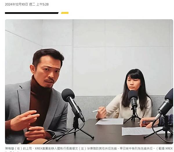 陳梅慧(右)的上司、XREX集團創辦人暨執行長黃耀文(左)涉嫌暗助其他共犯洗錢,早已被中檢列為洗錢共犯。(翻攝 XREX YouTube)