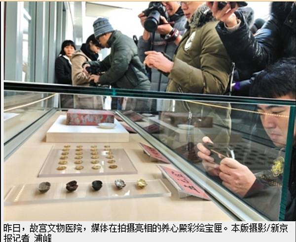紫禁城古建築群始建於一四二○年,是我國明清官式木構古建築的典型代表。近六百年來,這些古建築歷盡風雨,依然聳立完好。其壯美的外觀、嚴謹的形制、生動的空間、絢麗的色彩、豐富的造型、精湛的工藝、有序的架構等特色引起了國內外公眾的高度關注和興趣,每年吸引數千萬的遊客來參觀。紫禁城古建築群是我國古代建築文明的精粹,亦是我國古代勞動人民的智慧和汗水的結晶,具有重要的文物、歷史和文化價值。一九八七年,紫禁城古建築群被聯合國列為世界文化遺產名錄。 故宫养心殿正脊的宝匣展出 里面放了这些宝物(图)(含视频)_手机新浪网