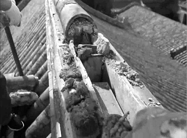 從發現的寶物來看,其安置位置一般位於建築物正脊正中。所謂脊,就是沿屋頂轉折處或屋面與牆面、樑架相交處,用磚、灰、瓦等材料做成的砌築物。脊兼有防水和裝飾作用。正脊,則是指沿著前後坡屋頂相交線做成的脊。正脊往往沿著桁檁方向,且在屋頂最高處。古人用龍口來形容這個位置,充分反映了其重要地位。我國古代建築的初次營建過程中,工人在砌築正脊時,一般由兩端向中間壘砌脊筒,然後會提前在正脊正中留一個口子暫時不封瓦,稱為“龍口”,“龍口」深約0.5 m,長和寬略大於正脊所用單塊筒瓦的平面尺寸,以便於將寶箱放入龍口。在建築施工快要完成時,工人會在「龍口」內放入寶箱,安放的過程稱為「迎龍口」。如圖2所示為2016年11月9日大高玄殿寶箱迎龍口的照片。 「迎龍口」後,工人(未婚男工)再把最後一塊正脊瓦合上,表示該建築的屋頂部分施工全部完成,預示工程的完整性,該過程稱為「合龍」[6]。要保持寶箱乾燥,在「合龍」時,工人還需要在「龍口」附近放許多吸水的木炭。在古代不光宮廷建築的屋脊正中要放寶藏,民間建築也有此習俗,只不過寶藏內的具體內容與宮廷建築有區別,故工匠中有“瓦匠不合空'龍口'”的說法。而當古建築歷經時間長久需要進行修繕時,在拆卸屋頂前,工人會把寶箱從「龍口」中取出來,該過程稱為「請龍口」。如圖3所示為2018年9月3日養心殿寶箱「請龍口」時的照片。從照片中可見,寶物四周有錫製的面框防護,以利於防水、防腐與防蟲。寶箱取出後會保護,待建築物修繕完工時再放回正脊內。