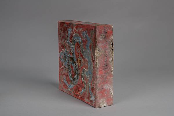 據介紹,經卷、五色緞和五色絲線均已糟朽,依稀可見;五香、五藥和五谷都已腐爛,難以分辨。通過對寶匣基體進行元素定量分析,發現寶匣基底的主要元素為鉛和錫,即鉛錫合金。寶匣彩繪圖案為一條青龍正龍圖形,龍頭下面有寶珠一顆,正龍以藍色即青色為主色,配有其他顏色。