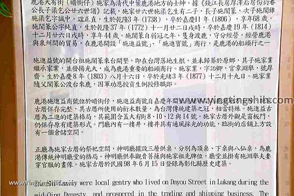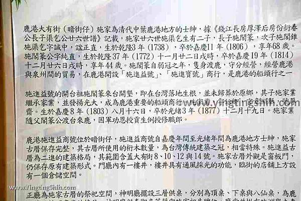 歷史沿革資料來源黃英閔主持,《彰化縣歷史建築鹿港施進益古厝修復及再利用計畫》,彰化:彰化縣文化局,P.2-11~P.2-25。