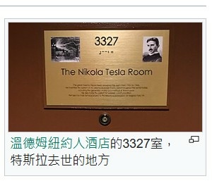 溫德姆紐約人酒店的3327室,特斯拉去世的地方